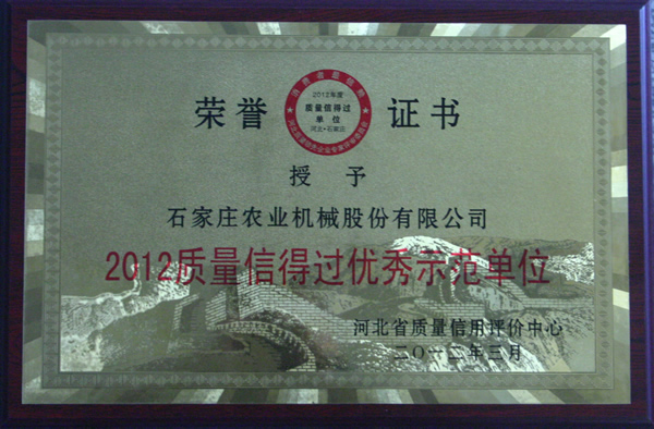 2012質(zhì)量信得過(guò)優(yōu)秀示范單位