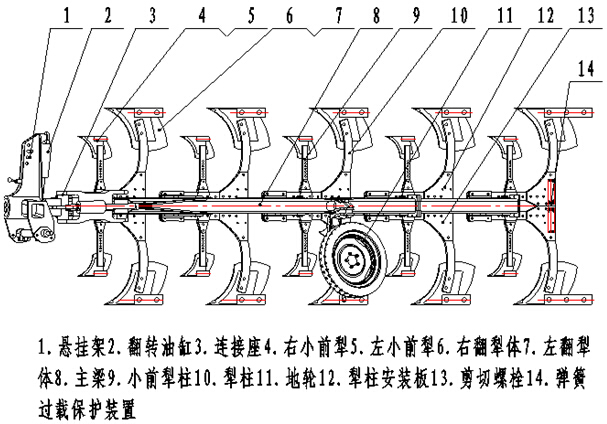 3.安裝有彈簧和剪切螺栓組成的過載保護(hù)裝置,有效保護(hù)工作部件在較惡劣的工作條件下不被損壞,通過性好適應(yīng)性廣。